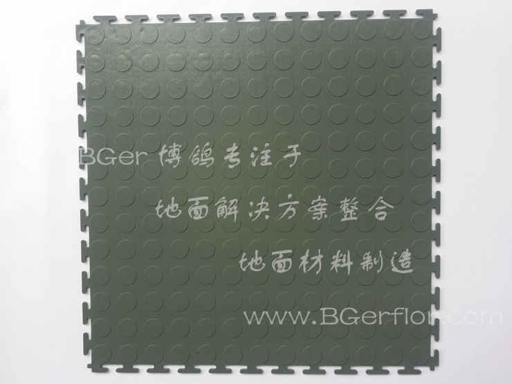 F505_C型工業地板使用特性優勢: ■ 超耐磨、超耐壓承重型、耐油、絕緣;防滑、防潮、防酸堿,耐化學腐蝕,抗老化穩定;防砸、耐沖擊、抗劃傷等;有效緩解腳部疲勞,保護地面。 ■ 表面防滑硬幣紋設計,有效增加摩擦,強力防滑,易于清潔,維護簡便。 ■ 拼接式設計,鋪裝簡便,省時省力;可以在任何基層地面上安裝使用;邊緣是鎖扣設計,相互扣接在一起鋪裝,環環穩固相扣。 ■ 有配套邊,為鋪裝的區域邊緣收邊,保證鋪裝和基層地面無高低落差。 ■ 多種顏色可選擇定制,可定制顏色:綠、灰、黑、藍、紅、黃。可選擇多種顏色組合,對鋪裝空間進行不同顏色鋪設劃分不同區域。 ■ 安裝簡便快速,自由鎖扣拼接鋪裝,不影響正常生產、作業運行,基本無停機時間。 ■ 耐久使用,即使在長期使用過程中,有局部損壞,可隨時快速更換損壞的某塊。